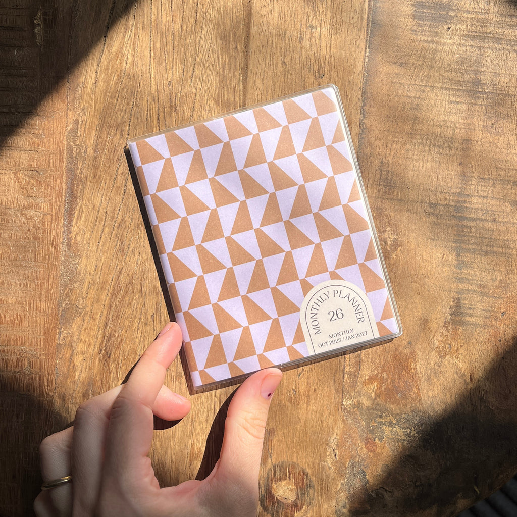 Měsíční diář s čistým a minimalistickým designem se vejde do každé kapsy a budete mít vždy přehled o nadcházejících úkolech a schůzkách. Je v měkkém PVC obalu, takže vydrží po celý rok fresh a k použití je už od října.